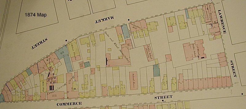 From Reports of the City Officers for the year 1873: The Public Grammar School house in Commerce Street was erected in 1846-7. It is one of the old class of buildings, like the one described in the Fire Ward. The lot upon which the building is located, is 60 feet on Commerce Street with a depth of 150 feet, forming an L on the rear, on which stands a Primary School building. The lot cost $4,000 The Grammar School was held in this building till Sept. 1873, when it was transferred to the new house on Lawrence Street. |