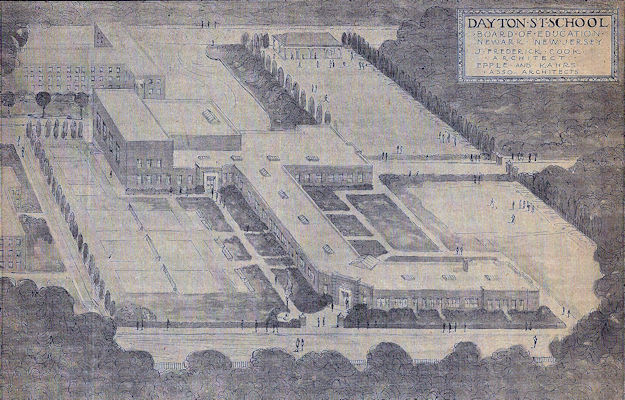 From " A Preliminary Report on A Postwar Construction Program for Newark, New Jersey" Construction of the Dayton Street School is recognized as the most imperative need of the school system. The improvement has been recommended both by the Principals' Committee of the Board of Education and the Columbia University Survey. This school is badly needed in a neighborhood separated from the rest of the city by parks, railroads and highways. In this area is the large Seth Boyden public housing development containing 530 family units. Approximately six hundred children from the neighborhood to be served by the new school are now transported by bus to Ann Street School and Miller Street School. A grade school, properly located and provided with an adequate site, would prove to be a most desirable step in neighborhood development in this area, and is in accord with preliminary studies of neighborhood plans now being considered by the Central Planning Board. The Board of Education previously owned a small abandoned school in this area. The Board has acquired a portion of Dreamland Park and several additional pieces of property along Hanford and Ross Streets. The total area now owned by the School Board for this school site is approximately 125,696 square feet, or 2.9 acres. The Central Planning Board recently recommended to the Board of Education that enough additional land be acquired to make a total site area of approximately five acres. An Architect has been engaged to prepare plans and specifications. Preliminary plans are completed and detailed plans are now under way. The estimated cost of building and land is $560,000.