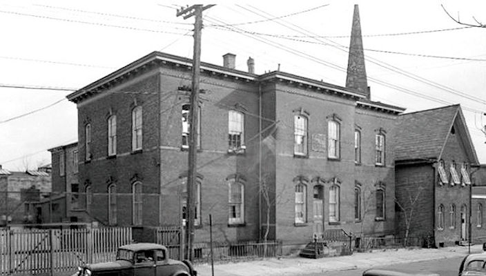 From Reports of the City Officers for the year 1873: The Public School House in State Street was erected in 1845. The lot is 125 feet on State Street, and 125 feet deep, and was purchased for two thousand and five hundred dollars. The building is of brick, two stories high, with tin roof. This, and the houses in the 2nd, 3rd, 4th, 5th 7th and 13th Wards were built after the same pattern; they are each about 22 feet wide, and, including the vestibule, 75 feet deep. The first story was occupied by the female department, and the second by the male department. Each floor was divided into three rooms - one large room, occupying four-fifths of the floor, where all the pupils of that department assembled in the morning, and remained under the supervision of the principal, except when two classes were sent into the little corner rooms, about 10 x 12 feet, where they recited to the assistant teachers, after which they were sent back to the main room, and others took their places. The Principal heard his own classes and maintained the order of the entire school, of his or her department; there was a principal for each department - one male and one female. The Grammar school for this ward (First Ward) was held here until 1869, when it was transferred to the new house on Burnet Street |
