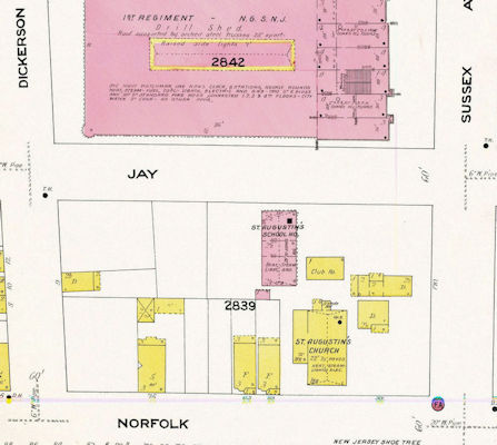 From: Essex County, NJ, Illustrated 1897 This school was founded in 1874. The two story building is situated at 70 Jay Street near Sussex Avenue. Its dimensions are 74 x 32 feet, and is valued at $12,600, including the building together with the four lots surrounding it. There are four classrooms for the accommodation of more than three hundred children. The school is in the charge of Rev. Father Neidermeyer and the Sisters of Charity. |